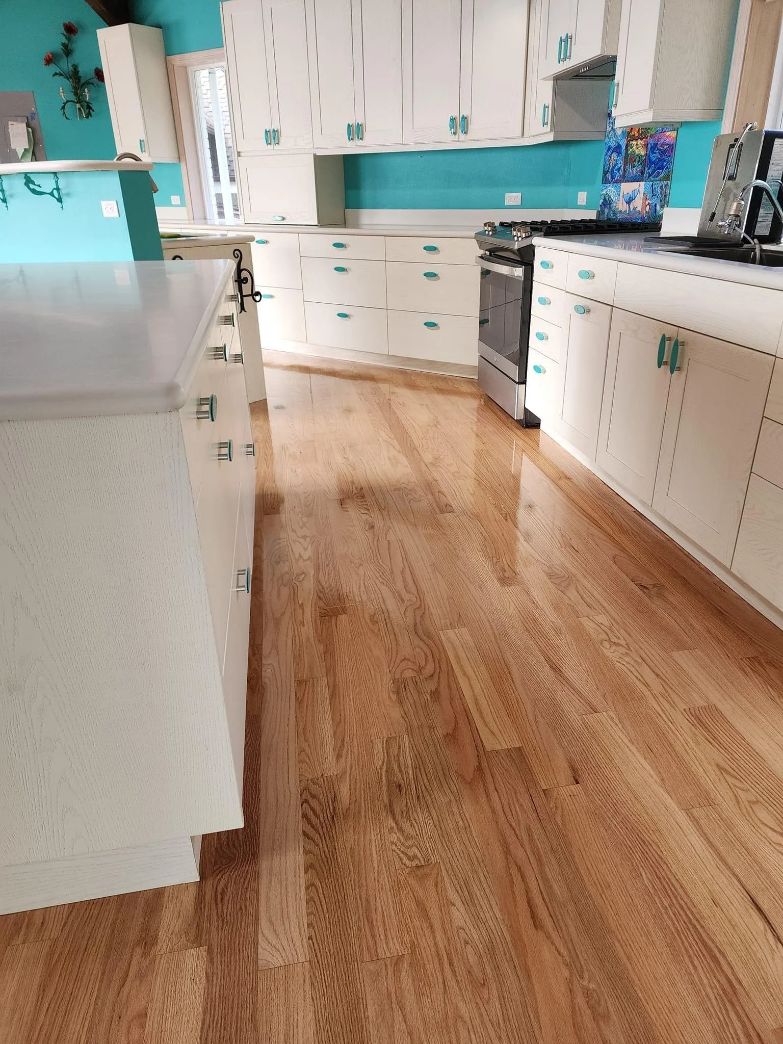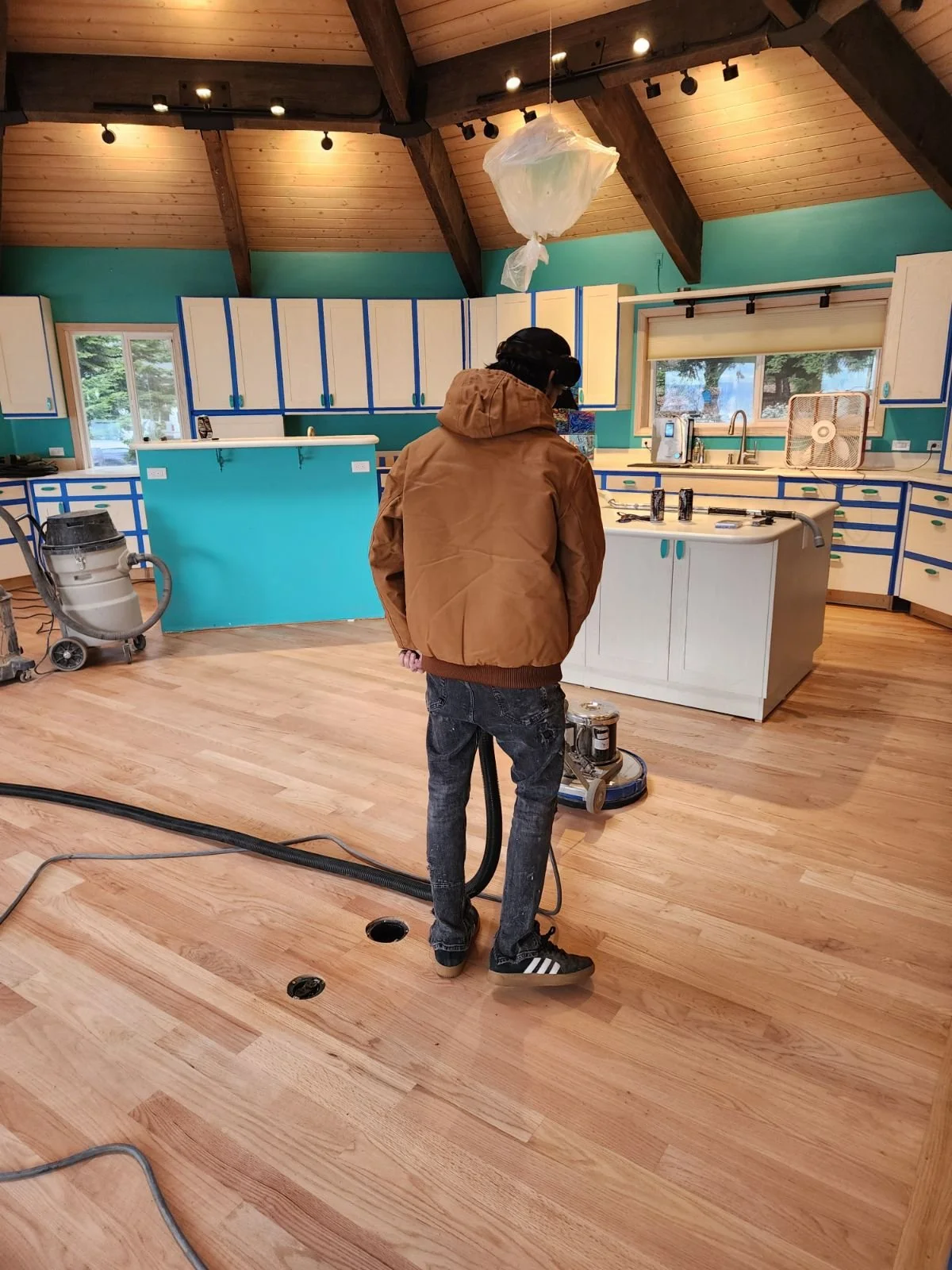 Tired of dealing with outdated, damaged floors? Let us revamp your space with our top-notch flooring options. Elevate your home’s style and comfort with ease! Personalize your space with custom stain options tailored to your preferences. Whether you prefer a light, airy finish or a bold, dramatic look, we have the perfect stain for you. Our hardwood refinishing process is crafted to breathe new life into your floors. Using state of the art equipment and premium-quality products, our skilled technicians sand away years of wear and tear, revealing the rich, original grain of your hardwood. We take pride in our attention to detail, ensuring that every inch of your floor is treated with care and precision. Once the sanding is complete, we will begin the finish process. Finish provides both protection and enhancement, accentuating the unique character of your hardwood while guarding against future damage.
